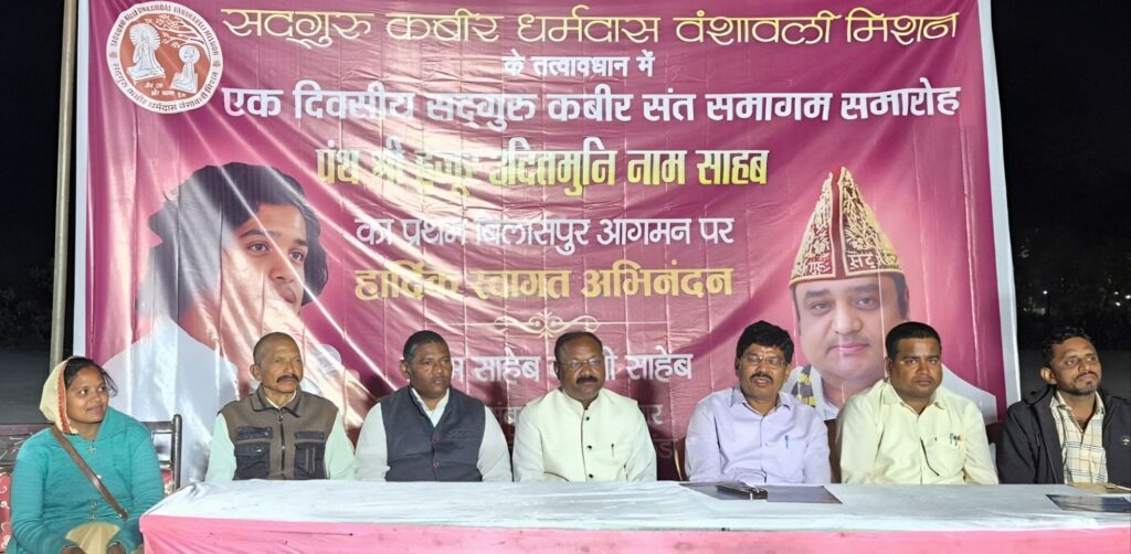 बिलासपुर में 14 दिसंबर को एक दिवसीय संत समागम का भव्य आयोजन किया जा रहा है। यह समारोह सतगुरु कबीर धर्मदास वंशावली के तत्वावधान में आयोजित किया जा रहा है, जिसमें पंथ श्री हुजूर उदितमुनि नाम साहेब का प्रथम बिलासपुर आगमन हो रहा है। यह ऐतिहासिक अवसर कबीर पंथियों के लिए गौरवपूर्ण माना जा रहा है। कार्यक्रम का आयोजन साइंस कॉलेज, सरकंडा परिसर में सुबह 8 बजे गुरु महिमा पाठ से शुरू होगा। इसके बाद प्रातः 9 बजे से भजन-सत्संग का आयोजन होगा, जिसमें महंत संत श्री राजू दास साहेब सत्संग प्रस्तुत करेंगे। दोपहर 12 बजे पंथ श्री हुजूर उदितमुनि नाम साहेब का भव्य आगमन शोभायात्रा एवं कलश यात्रा के साथ किया जाएगा। इस दौरान वे सभी कबीर पंथियों को आशीर्वचन देंगे और दर्शन व भेट-वंदगी का अवसर मिलेगा। साथ ही, इस शुभ अवसर पर दोपहर 12 बजे से भोजन भंडारा भी आयोजित किया गया है। आयोजकों ने सभी कबीर पंथी, श्रद्धालु और भक्तजनों से सपरिवार इस कार्यक्रम में भाग लेने की अपील की है। इस आयोजन में शीतल दास महंत, चेतन दास महंत, ईश्वर दास, महंत शिवदास, राकेश मानिकपुरी, सी.डी. मानिकपुरी, बहोरन दास, पुरनदास दीपक साहेब, सुमन साहेब सहित अनेक सेवाभावी जन सहयोग कर रहे हैं। आयोजक समिति ने सभी श्रद्धालुओं से कार्यक्रम को सफल बनाने में सहयोग की अपील की है। यह समारोह श्रद्धालुओं के लिए धार्मिक आस्था और सामाजिक एकता का अद्भुत अवसर है, जो सदगुरु कबीर के संदेशों को फैलाने और उनके वंशावली का स्मरण करने का अवसर प्रदान करेगा।