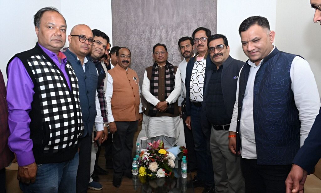 रायपुर छत्तीसगढ़ बिलासपुर प्रेस क्लब की नई कार्यकारिणी ने रायपुर स्थित न्यू सर्किट हाउस में मुख्यमंत्री विष्णुदेव साय से सौजन्य मुलाकात की। प्रेस क्लब अध्यक्ष अजित मिश्रा, उपाध्यक्ष विजय क्रांति तिवारी, सचिव संदीप करिहार, सह-सचिव हरिकिशन गंगवानी सहित वरिष्ठ पत्रकारों ने मुख्यमंत्री को मुख्य अतिथि बनाने और डिप्टी सीएम अरुण साव से समारोह की अध्यक्षता कराने का आग्रह किया। साय ने इस प्रस्ताव को सहर्ष स्वीकार कर कार्यकारिणी को जीत की शुभकामनाएं दीं और 26 जनवरी 2026 को बिलासपुर दौरे का आश्वासन दिया। अपने निज सचिव दीपक अंधारे को कार्यक्रम में दर्ज करने के निर्देश दिए।
